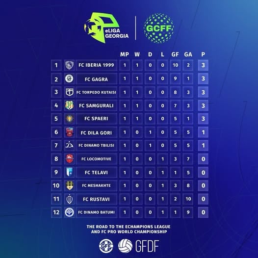 eLiga Georgia-ს მატჩები EA FC 26-ში იმართება. შეჯიბრება ორ ეტაპად არის დაყოფილი: ლიგის ფაზა და ფლეი-ოფის ეტაპი. ტურნირის ფინალი 30 აპრილს არის დაგეგმილი.